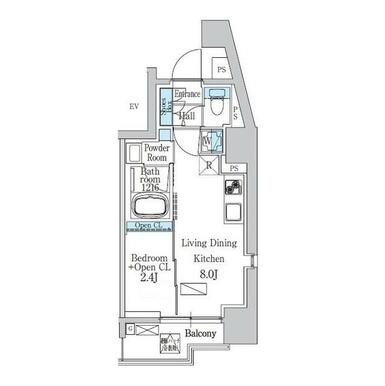 | 間取り | 1LDK(LDK8 洋室2.4) | 主要採光面 | 南西 |